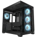 В оснащение данной модели входят слоты для установки материнской платы, графического адаптера, нескольких накопителей, а также до 9 вентиляторов (6 вентиляторов с ARGB подсветкой предустановлены) и жидкостной системы охлаждения.