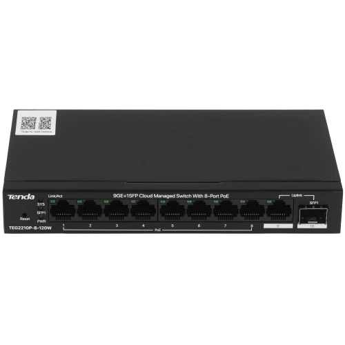Коммутатор Tenda TEG2210P-8-120W второго уровня оснащен восемью гигабитными портами PoE и двумя аплинками – гигабитным Ethernet и гигабитным SFP. Модель поддерживает управление через веб-интерфейс и мобильное приложение Tenda CloudFi.