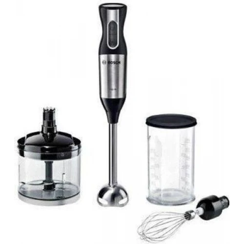 Bosch MSM6S50B поддерживает 12 скоростных режимов, а для выбора максимальной мощности работы предусмотрена кнопка «Турборежим». Ножка блендера изготовлена из нержавеющей стали и оснащена ножом с 4 лезвиями. В наборе предусмотрен измельчитель с острым ножом, который справляется с измельчением орехов, трав, мяса, сыра и прочих продуктов. А для взбивания крема из сливок, яичного белка, а также замешивания жидкого теста имеется в наличии венчик.