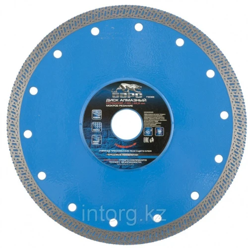 Характеристики Диск алмазный Барс Сплошной ф180х22,2 мм, тонкий, сухое/мокрое резание