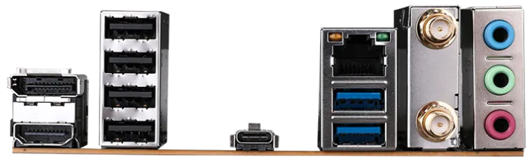 - Предусмотрено один высокоскоростной интерфейс USB 3.2 Gen 2 Type-C и один высокоскоростной интерфейс USB 3.2 Gen 1 Type-A на задней панели