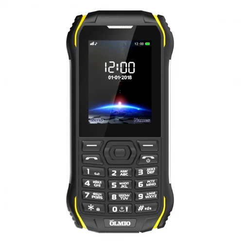 Сотовый телефон Olmio X05 станет отличным выбором для самых экспрессивных и экстремальных натур. Он облачен в пластиково-металлический корпус со степенью влаго- и пылезащиты IP68. Кнопки клавиатуры устройства крупные и приятные на ощупь. Экран модели обладает диагональю 2.4 дюйма и разрешением 320x240 пикселей.