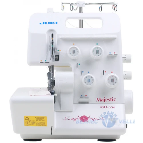 Оверлок Juki MO-55E — надежная техника, на которую распространяется гарантия 2 года. Чтобы придать изделию фабричный вид, достаточно заправить машину, выставить требуемые значения и нажать на педаль.