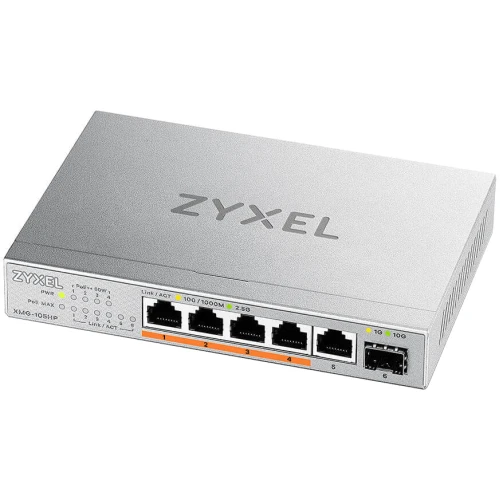 Неуправляемый коммутатор Zyxel XMG-105HP – 5-портовая мультигигабитная модель с 10-гигабитным оптическим аплинком. Медные порты поддерживают скорость сетевого соединения до 2.5 Гбит/с.