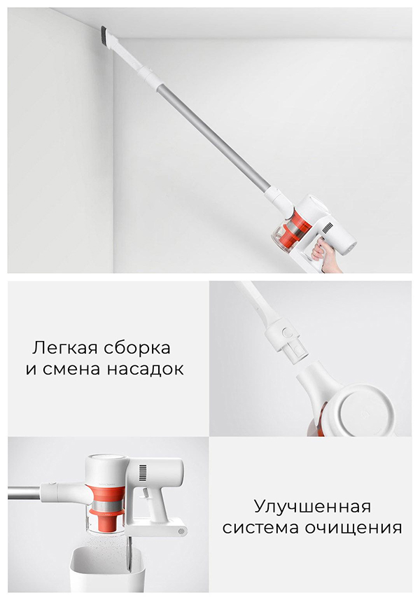 Особая конструкция Xiaomi Handheld Wireless Vacuum Cleaner 1C позволяет проникать даже в самые труднодоступные места и тщательно очищает их от скопившейся пыли.